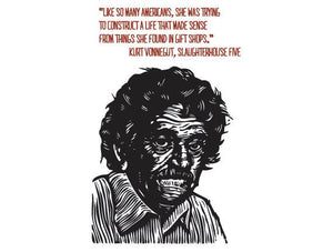 Kurt Vonnegut Quote Postcard, Literary Postcard, Kurt Vonnegut Portrait Quote Postcard, Kurt Vonnegut Linocut Art Postcard - Author Quote