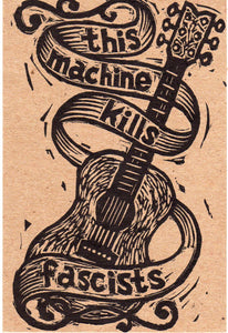 Linocut Postcards 5 Pack This Machine Kills Fascists Letterpress Postcards Woody Guthrie Guitar Linocut - Postcard Set - Hand Printed Cards