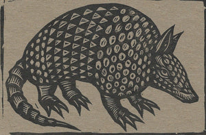 Linocut Armadillo Postcard - Armadillo Linocut Letterpress Postcard - Stationery - Cards - Paper Chipboard - Animal Linocut Cards