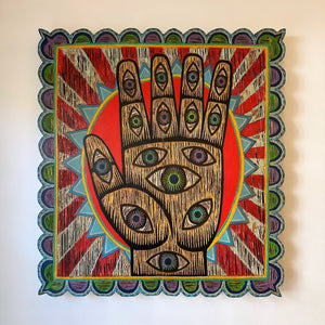 Hamsa Wall Art - Original One of a Kind Fine Art - Psychedelic Art - Evil Eye Art - Eye in Hand Art